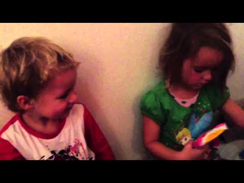 Lillebror Zachris hjälper så gärna till och delar ut paket till Alvina.