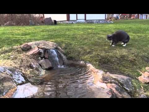 Idag har jag rensat Bonnys damm. När vi startade den hoppade det fram både paddor och ödlor. Sedan blev katten Frodo nyfiken på vad vattnet kom ifrån. Det har varit en jätte fin vårdag idag. Zachris och Alvina har varit ute hela eftermiddagen i solen och lekt.